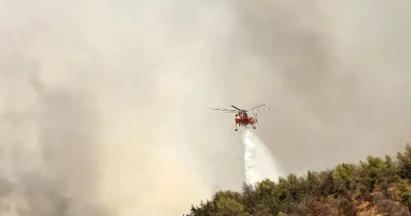 Ρίψεις νερού από αέρος πραγματοποιούν δύο αεροσκάφη και ένα ελικόπτερο.
