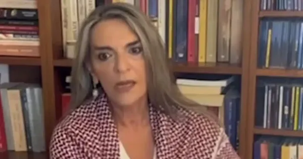 Η εικόνα της κας Πέρκα να δηλώνει ότι έχει απαχθεί από τους Ισραηλινούς φορώντας μια παλαιστινιακή μαντήλα, μακιγιαρισμένη, με φόντο τη βιβλιοθήκη στο σαλόνι της, έκανε αρκετούς στα social media να τη σχολιάσουν δηκτικά.