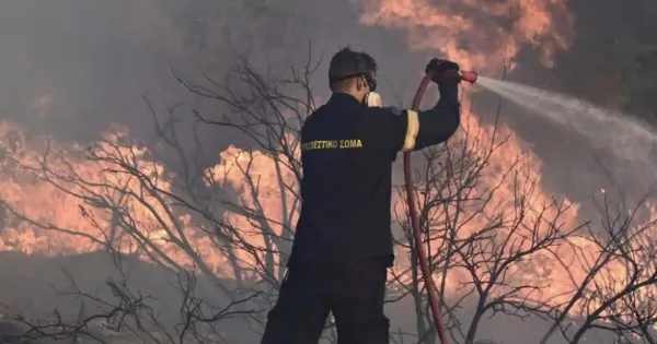 Οι δυνατοί άνεμοι που πνέουν στην περιοχή δυσχεραίνουν το έργο των δυνάμεων της πυροσβεστικής που προσπαθούν να οριοθετήσουν τη φωτιά προτού πάρε ανεξέλεγκτες διαστάσεις.