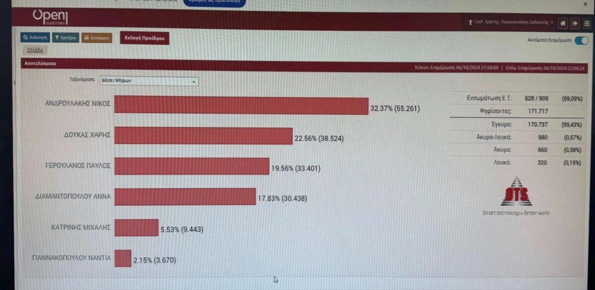 Εκλογές στο ΠΑΣΟΚ: Πρωτιά Ανδρουλάκη – Μάχη Δούκα – Γερουλάνου