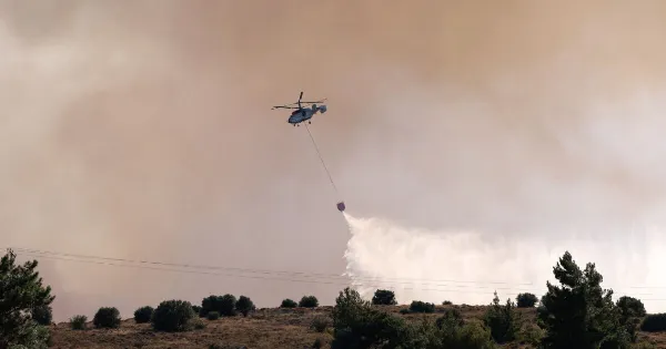 Σύμφωνα με τις πρώτες πληροφορίες, η πυρκαγιά ξεκίνησε από τα σφαγεία και ανεβαίνει προς τις ανεμογεννήτριες, καίγοντας έκταση με αστιβιές και βελανιδιές. Στο σημείο πνέουν ισχυροί άνεμοι καθιστώντας δυσκολότερο το έργο της κατάσβεσης.