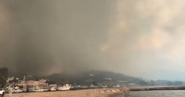 Εγκλωβισμένοι σε παραλίες βρίσκονται πολίτες εξαιτίας της πυρκαγιάς που ξέσπασε στη Χίο.