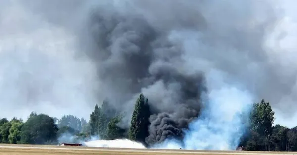 Οι εικόνες που διακινήθηκαν στο διαδίκτυο καταγράφουν ένα μεγάλο σύννεφο μαύρου καπνού, ενώ σύμφωνα με αυτόπτη μάρτυρα είχε προηγηθεί μια «μπάλα φωτιάς».