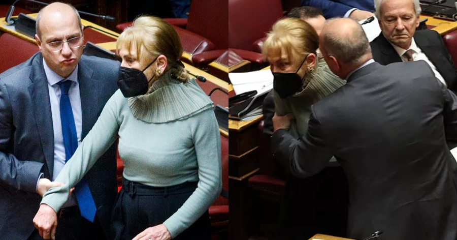 Η βουλευτής της Νέας Δημοκρατίας φάνηκε… ασταμάτητη, με τον κυβερνητικό εκπρόσωπο, Γιάννη Οικονόμου να την συγκρατεί τελευταία στιγμή. «Ζηλέψατε το Τουρκικό κοινοβούλιο», είπε από την πλευρά του ο Πρόεδρος της Βουλής, Κ. Τασούλας.