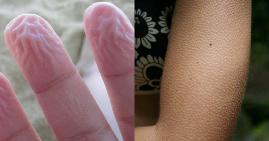 Ρυτίδιασμα του δέρματος: Οι ρυτίδες που εμφανίζονται στο δέρμα των χεριών διαδραματίζουν σημαντικό ρόλο. Το φαινόμενο αυτό προκαλείται όταν το σώμα αντιμετωπίζει μια αυξημένη ποσότητα υγρασίας και καταλαβαίνει ότι το περιβάλλον μπορεί να είναι ολισθηρό. Έτσι, το δέρμα των χεριών σας αρχίζει αμέσως να αλλάζει με τρόπο που θα καταστήσει ευκολότερο για σας, να πιάσετε λείες επιφάνειες.