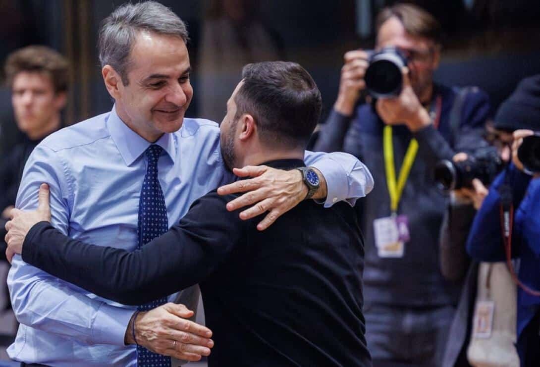 «Ένθερμη» αγκαλιά Μητσοτάκη σε Ζελένσκι στη Σύνοδο Κορυφής στις Βρυξέλλες