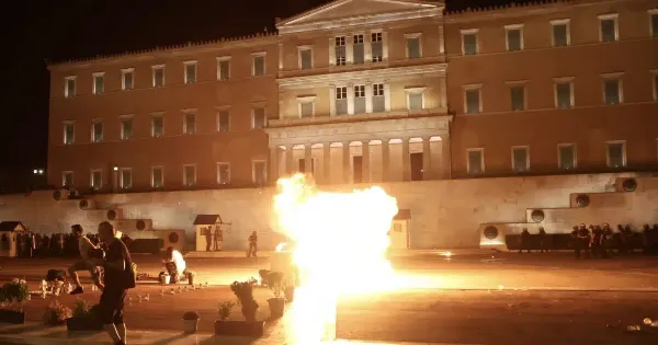 Μετά την ολοκλήρωση της συγκέντρωσης που διοργανώθηκε στην πλατεία Συντάγματος, με αφορμή την το κλείσιμο της δικογραφίας στην υπόθεση της τραγωδίας των Τεμπών, άγνωστοι πέταξαν μολότοφ στο σημείο όπου βρίσκεται το μνημείο του Αγνώστου Στρατιώτη, με αποτέλεσμα να προκληθεί αναταραχή και να επέμβουν τα ΜΑΤ.
