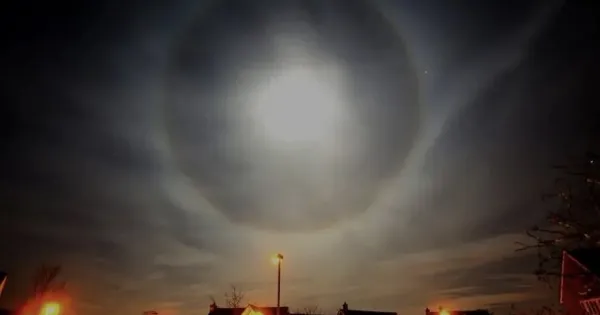 Ένα «σεληνιακό φωτοστέφανο» έγινε ορατό σε διάφορες πόλεις στο νυχτερινό ουρανό της Αγγλίας αναφέρει το BBC.