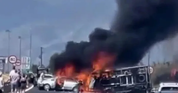 Το τροχαίο δυστύχημα συνέβη όταν, κάτω από άγνωστες μέχρι στιγμής συνθήκες, ένα φορτηγό συγκρούστηκε με 2 αυτοκίνητα, με αποτέλεσμα να ξεσπάσει φωτιά και να χάσουν τη ζωή τους 3 άτομα.