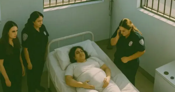 Η βαριά πόρτα έτριξε. Στον θάλαμο, που έμοιαζε περισσότερο με κελί, μια έγκυος γυναίκα ήταν ξαπλωμένη σε ένα στενό μεταλλικό κρεβάτι. Κρατούσε την τεράστια κοιλιά της και κοίταζε το πάτωμα. Το πρόσωπό της χλωμό, τα μαλλιά της ατημέλητα. Μα υπήρχε κάτι παράξενο στη σιωπή της: όχι φόβος ή πόνος, αλλά σαν παραίτηση.