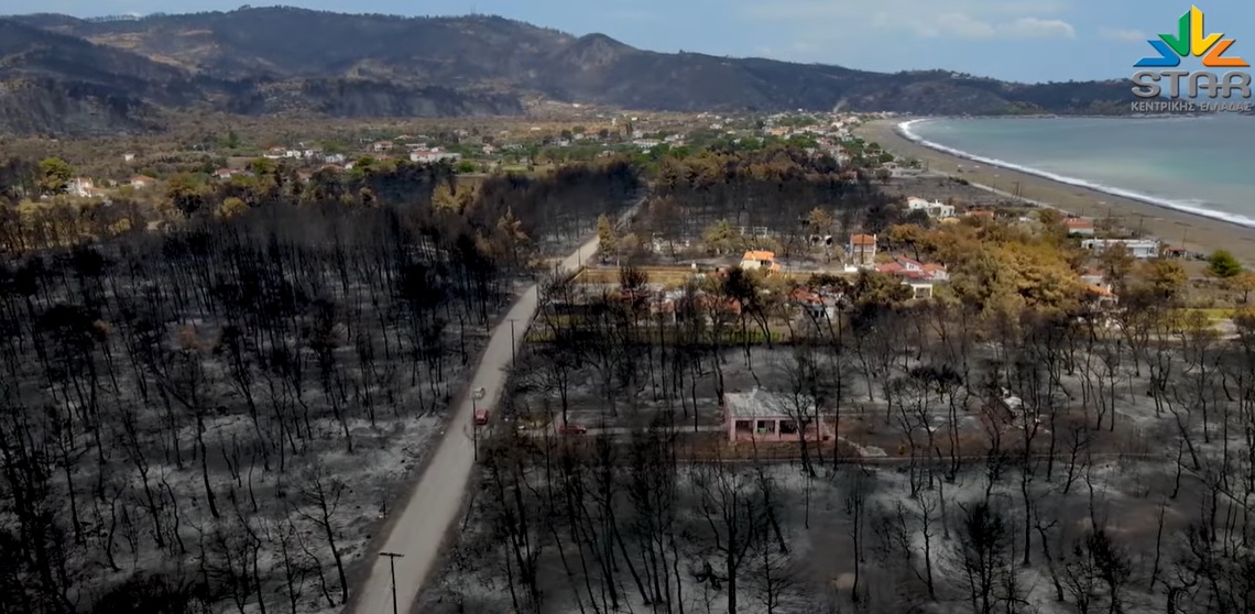 Ο εικονολήπτης του Star Κεντρικής Ελλάδας Παναγιώτης Πραγιάννης μεταφέρει πανοραμικές εικόνες από drone από την καμένη γη στη Βόρεια Εύβοια. Την μουσική του video επιμελήθηκε η Δήμητρα Πρασσίδου.