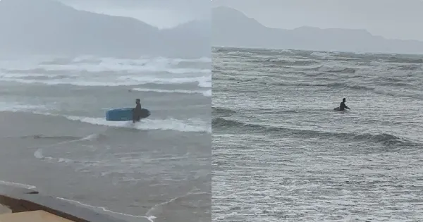 Κάποιοι τολμηροί όμως (απερίσκεπτοι πιο σωστά), βρήκαν την ευκαιρία να επιδωθούν στο αγαπημένο τους σπορ, το σερφ, καθώς τα μεγάλα κύματα τους προσφέρουν μια έξτρα δόση αδρεναλίνης.