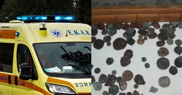 Ωστόσο μεγάλη εντύπωση τούς προκάλεσε το γεγονός ότι μέσα στο σπίτι του υπήρχαν διάσπαρτα αντικείμενα που έμοιαζαν με αρχαιότητες. Άμεσα κλήθηκε αρμόδιος από την Εφορεία Αρχαιοτήτων Κυκλάδων ο οποίος διαπίστωσε ότι όντως υπήρχαν αντικείμενα που εμπίπτουν στις διατάξεις περί αρχαιοτήτων. Τα 48 συνολικά αρχαία αντικείμενα που βρέθηκαν στο σπίτι, καθώς επίσης και τα 215 αρχαία νομίσματα, καταγράφηκαν και κατασχέθηκαν για περαιτέρω αξιολόγηση.