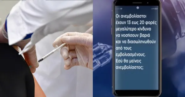 Από τη Δευτέρα 1 Νοεμβρίου, ωστόσο, ξεκινά καμπάνια για τον εμβολιασμό και σύμφωνα με τον ΣΚΑΙ θα στέλνονται καθημερινά μηνύματα στα κινητά τηλέφωνα 450.000 ανεμβολίαστων μέχρι να νοσήσουν ή να εμβολιαστούν!