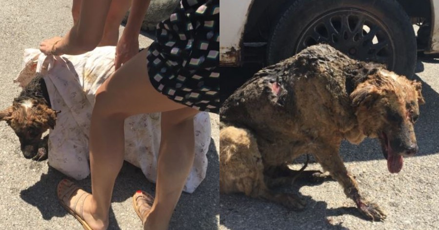 Κάτοικοι φροντίζουν σκύλο με εγκαύματα που σώθηκε από την φωτιά στα Βίλια