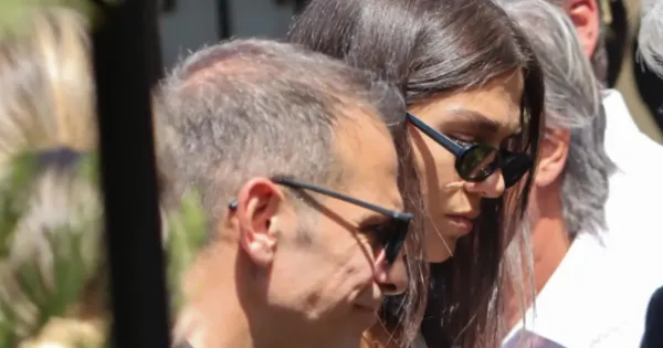 Τραγική φιγούρα ο σύντροφός της Ντέμης Νικολαΐδης που ήταν εμφανώς συντετριμμένος.