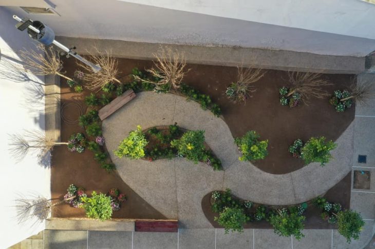 Όπως αναφέρθηκε σχετικά στην ανακοίνωση του Δήμου Αθηναίων, το δάπεδο καθώς και το πεζοδρόμιο είναι από ειδικό σκυρόδεμα, φιλικό προς το περιβάλλον. Επίσης, τα καθιστικά είναι κατασκευασμένα από ανακυκλωμένη ξυλεία, ενώ τα αειθαλή και φυλλοβόλα δέντρα ποτίζονται με υπεδάφιο αρδευτικό σύστημα.