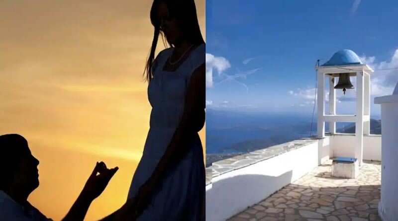 Όλα συνέβησαν το απόγευμα της Παρασκευής. Το ζευγάρι από την Τσεχία βρέθηκε στο νησί του Ιονίου για διακοπές και επισκέφθηκαν την εκκλησία του Προφήτη Ηλία στο χωριό Εγκλουβή. Ο 25χρονος γονάτισε για να κάνει την πρόταση γάμου στη σύντροφό του.