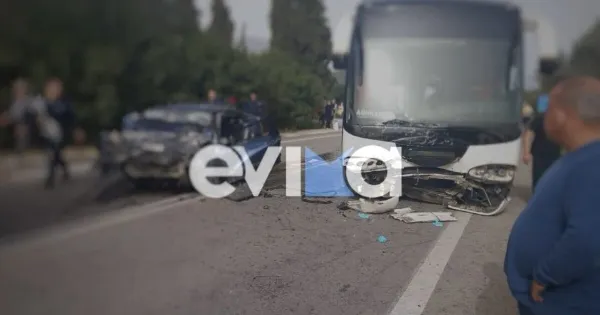 Σύμφωνα με το evima.gr, το λεωφορείο του ΚΤΕΛ εκτελούσε το δρομολόγιο των 13:00 μ.μ. από Κύμη για Αθήνα και ήταν γεμάτο με κόσμο την ώρα που έγινε η σφοδρή σύγκρουση με το αυτοκίνητο που οδηγούσε ο ηλικιωμένος άνδρας.