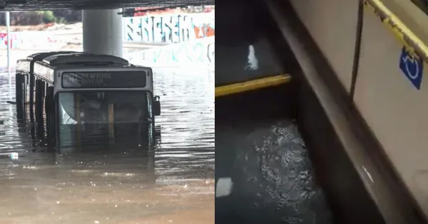Κακοκαιρία «Μπάλλος»: Λεωφορείο βυθίστηκε στα νερά στη Λεωφόρο Ποσειδώνος