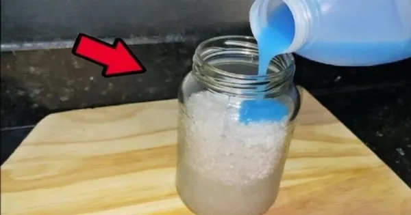 4. **Συμπληρώστε με Μαλακτικό:** Ρίξτε υγρό μαλακτικό μέχρι να καλυφθεί το υπόλοιπο του δοχείου. Το μείγμα είναι έτοιμο!