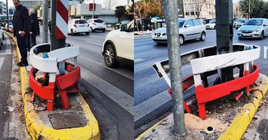 Σύμφωνα με πληροφορίες η μηχανή έπεσε με μεγάλη ταχύτητα στο φωτεινό σηματοδότη γκρεμίζοντας την κολόνα.