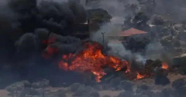 Η φωτιά στην Κερατέα ξέσπασε στην περιοχή της Πλάκας το πρωί της Κυριακής (30/06/2024) με την Πυροσβεστική Υπηρεσία να λαμβάνει κλήση για την εκδήλωση της πυρκαγιάς στις 11:55, η οποία έφτασε στα πρώτα από τα σπίτια.