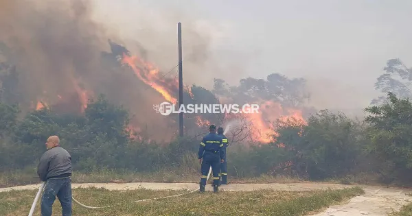 Μάλιστα, εστάλη προειδοποιητικό μήνυμα από το 112, καλώντας τους κατοίκους στον οικισμό Ναύσταθμο να απομακρυνθούν από την περιοχή λόγω της δασικής πυρκαγιάς.