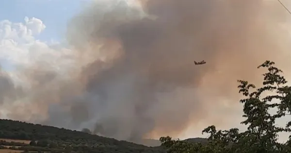 Συνεχίζονται οι προσπάθειες κατάσβεσης με 38 πυροσβέστες, 13 οχήματα, 2 αεροσκάφη και 1 ελικόπτερο.
