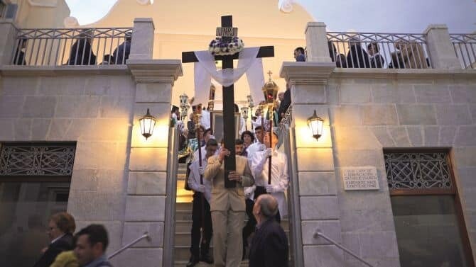 Σε αντίθεση με τα περισσότερα μέρη της Ελλάδας, όπου η πιο εντυπωσιακή στιγμή της Μεγάλης Εβδομάδας είναι η Ανάσταση, στη Σύρο είναι η Μεγάλη Παρασκευή και αυτό γιατί συνυπάρχουν οι Επιτάφιοι από τις ορθόδοξες και καθολικές εκκλησίες!