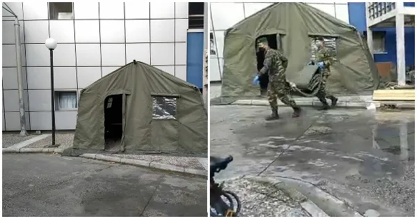 Δείτε μερικές χαρακτηριστικές φωτογραφίες από το στήσιμο σκηνών από το στρατό στο Νοσοκομείο στο Βόλο