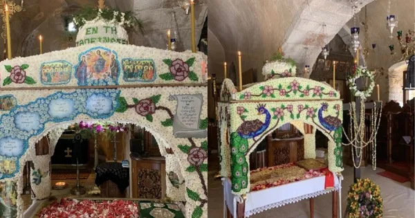 Ο Ηγούμενος της Μονής π. Παντελεημων, δημοσίευσε μερικές φωτογραφίες από τον εντυπωσιακά ανθοστολισμένο Επιτάφιο.