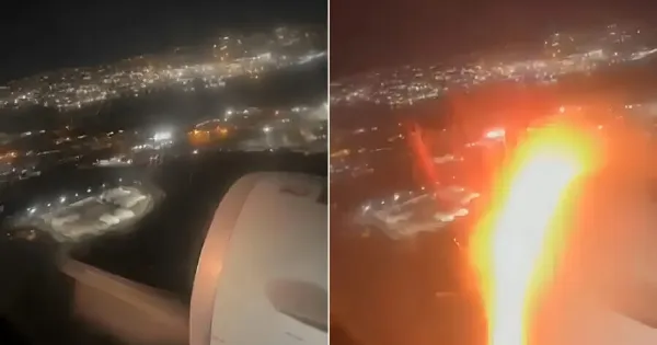 Βίντεο που τράβηξε επιβάτης της πτήσης, το οποίο δημοσιεύτηκε στο X, δείχνει τη στιγμή που το πτηνό πέφτει στον κινητήρα και πιάνει φωτιά.