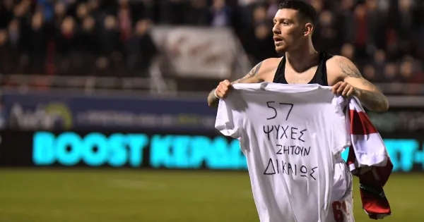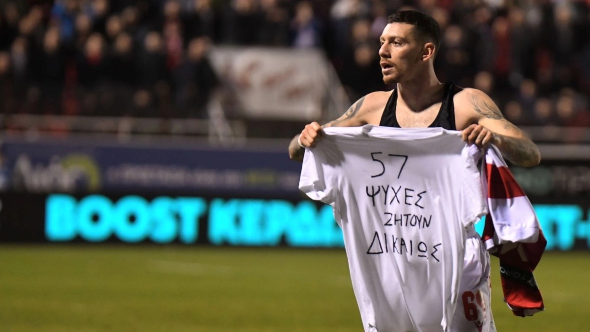 «57 ψυχές ζητούν δικαίωση», έγραφε η μπλούζα του Έλληνα οπισθοφύλακα, την οποία φορούσε κάτω από τη φανέλα του Πανσερραϊκού στην αναμέτρηση με την ομάδα του Στέλιου Μαλεζά, ο οποίος στις δηλώσεις του μετά το παιχνίδι έκανε αναφορά στην τραγωδία των Τεμπών και στις μεγαλειώδεις διαδηλώσεις που έγιναν ανά την Ελλάδα.