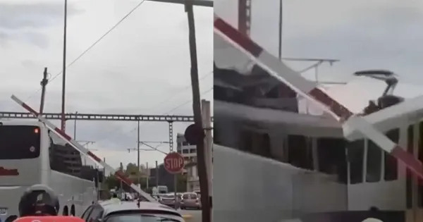 Όπως αποτυπώνεται σε βίντεο ντοκουμέντο, το τουριστικό λεωφορείο εγκλωβίστηκε από την μπάρα της διάβασης, με το τρένο το οποίο περνούσε εκείνη την στιγμή από τις γραμμές, να «γλείφει» το τουριστικό όχημα ενώ από τύχη δεν προκλήθηκε ατύχημα.