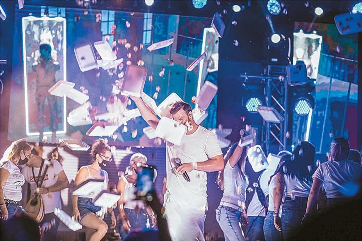 Αντιθέτως, κυριαρχούν το αμέριμνο κέφι και ο παλμός. Επίσης τα υψωμένα χέρια και τα εξ επαφής «πατείς με πατώ σε» λικνίσματα στον ρυθμό των τραγουδιών. Ακούγεται ότι ήταν μια πραγματικά αξέχαστη βραδιά, αν μη τι άλλο για όσους είχαν αποφασίσει να ξεχάσουν lockdown, τήρηση αποστάσεων και λοιπά περιοριστικά μέτρα, εν ολίγοις οτιδήποτε σχετικό με τον μισητό κορωνοϊό.