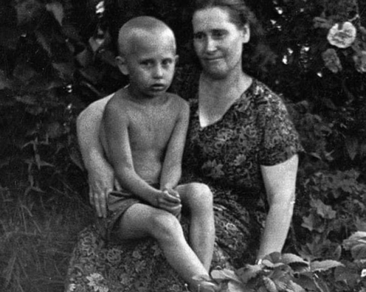Μια φωτογραφία του Πούτιν, ηλικίας 5 ετών, να κάθεται στην αγκαλιά της μητέρας του, με το χέρι της να τον αγκαλιάζει άκαμπτα, ενώ εκείνη κοιτάζει με κενό βλέμμα στο βάθος, λέει τα πάντα για το βαρύ ψυχικό τίμημα που επέφερε ο πόλεμος και η φτώχεια στο αγόρι και τη μητέρα του.