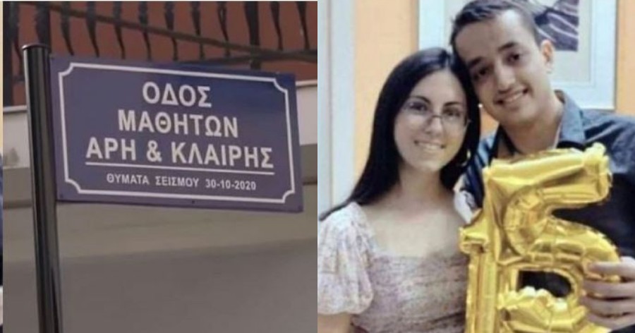 Το όνομα των δύο μαθητών που βρήκαν τραγικό θάνατο στο σεισμό της Σάμου, πριν από ακριβώς ένα χρόνο, δόθηκε στον δρόμο, όπου έχασαν τη ζωή τους, όταν τους καταπλάκωσε ετοιμόρροπο κτίριο.