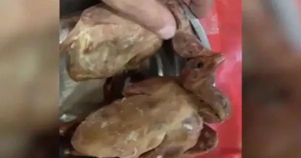 Ένα άλλο βίντεο δείχνει μια σακούλα γεμάτη με κρέας και αρκετά μπολ με ξεπουπουλιασμένα και μαγειρεμένα περιστέρια του δρόμου.