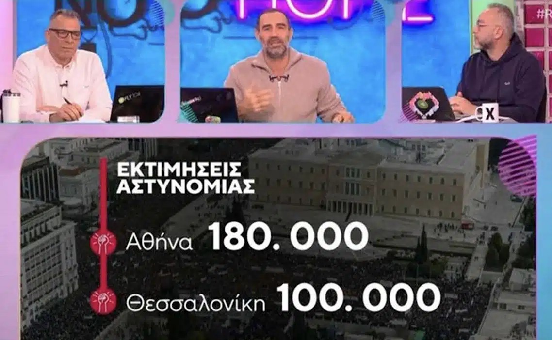 «Όταν γίνονταν οι συγκεντρώσεις για τα κόμματα, παίρνουν τους 50.000 και τους κάνουν 500.000 για πλάκα και τους 100.000 τους κάνουν εκατομμύριο. Βγήκαν να μας πούνε ότι είχαν 180.000 κόσμο στην Αθήνα και 100.000 στη Θεσ/νίκη. Δεν είμαστε με τα καλά μας! Έχουμε μεγάλο πρόβλημα.»