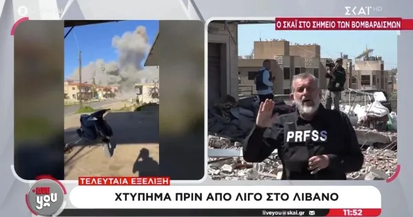 Συγκεκριμένα, στο σημείο βρισκόταν ο απεσταλμένος του καναλιού στη Βηρυτό, Χρήστος Νικολαΐδης μαζί με τον οπερατέρ του, ενώ η στιγμή της έκρηξης καταγράφεται ξεκάθαρα στο πλάνο, με τον θόρυβο που ακούγεται να είναι πραγματικά εκκωφαντικός.
