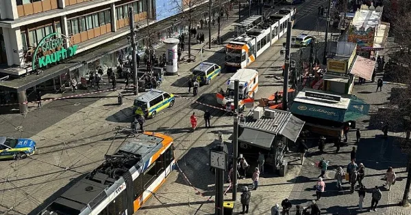 Σύμφωνα με πληροφορίες της BILD, δύο άνθρωποι σκοτώθηκαν και 25 τραυματίστηκαν, οι 15 από αυτούς σοβαρά. Ένα άτομο, καλυμμένο με μουσαμά, βρίσκεται κοντά σε μια στάση του τραμ.