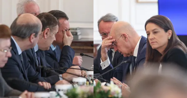 Εξαιρετικά βαρύ ήταν το κλίμα στο υπουργικό συμβούλιο υπό τον Κυριάκο Μητσοτάκη, με αφορμή την ανείπωτη τραγωδία στα Τέμπη που στοίχισε τη ζωή σε 57 ανθρώπους. Ο φωτογραφικός φακός απαθανάτισε τους υπουργούς συντετριμμένους και σε εξαιρετικά βαρύ κλίμα. Άλλοι κρατούσαν το πρόσωπό τους, αλλά ήταν σκυθρωποί, ενώ ο Άδωνις Γεωργιάδης φάνηκε να βουρκώνει.