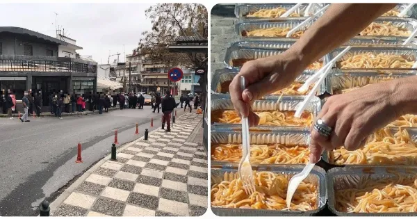 Θεσσαλονίκη δωρεάν φαγητό: Μεγάλη ουρά από κόσμο σημειώθηκε σε κατάστημα εστίασης στη Θεσσαλονίκη. Ο ιδιοκτήτης του καταστήματος αποφάσισε να μοιράσει μερίδες με φαγητό σε ανθρώπους που το έχουν ανάγκη. Πρόκειται για μία εξαιρετικά ευγενική χειρονομία που ανακούφισε πολλούς κατοίκους της περιοχής.