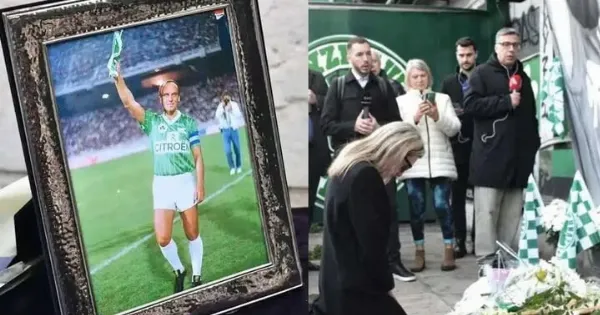Όταν έφτασε η σορός του Μίμη Δομάζου, όσοι ήταν συγκεντρωμένοι φώναξαν «αθάνατος» για τον μεγάλο «στρατηγό» του ελληνικού ποδοσφαίρου.