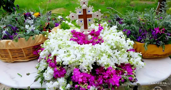 Παράλληλα, σε πολλούς ναούς μοιράζονται στους πιστούς λουλούδια ή βασιλικός που έχει τοποθετηθεί γύρω από τον Σταυρό, ως ευλογία.