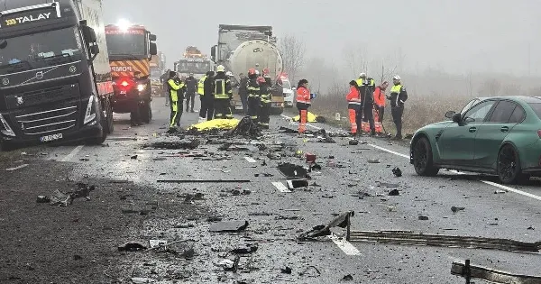 Το τραγικό συμβάν εκτυλίχθηκε στην είσοδο του περιφερειακού δρόμου Lugoj της Ρουμανίας. Σύμφωνα με τις πρώτες πληροφορίες, το μίνι λεωφορείο προσπάθησε να προσπεράσει ένα όχημα. Καθώς επιχειρούσε να επιστρέψει στη λωρίδα του, χτύπησε ένα βυτιοφόρο. Από την ορμή της σύγκρουσης, το όχημα εκσφενδονίστηκε στην αντίθετη κατεύθυνση, όπου συγκρούστηκε μετωπικά με ένα φορτηγό.