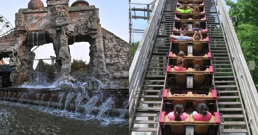 Τα βαγόνια ανεβαίνουν σε μεγάλο ύψος, ύψους περίπου 15 μέτρων, και πέφτουν με μεγάλη ταχύτητα σε νερό.