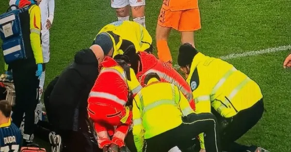 Οι γιατροί της ομάδας αντέδρασαν άμεσα. Τοποθέτησαν στον ποδοσφαιριστή κολάρο και τον μετέφεραν εκτός αγωνιστικού χώρου με φορείο, ακολουθώντας όλα τα απαραίτητα πρωτόκολλα ασφαλείας.