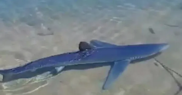 Όπως φαίνεται στο σχετικό βίντεο ο καρχαρίας κολυμπάει στα ρηχά, πιθανότατα κυνηγώντας την λεία του.